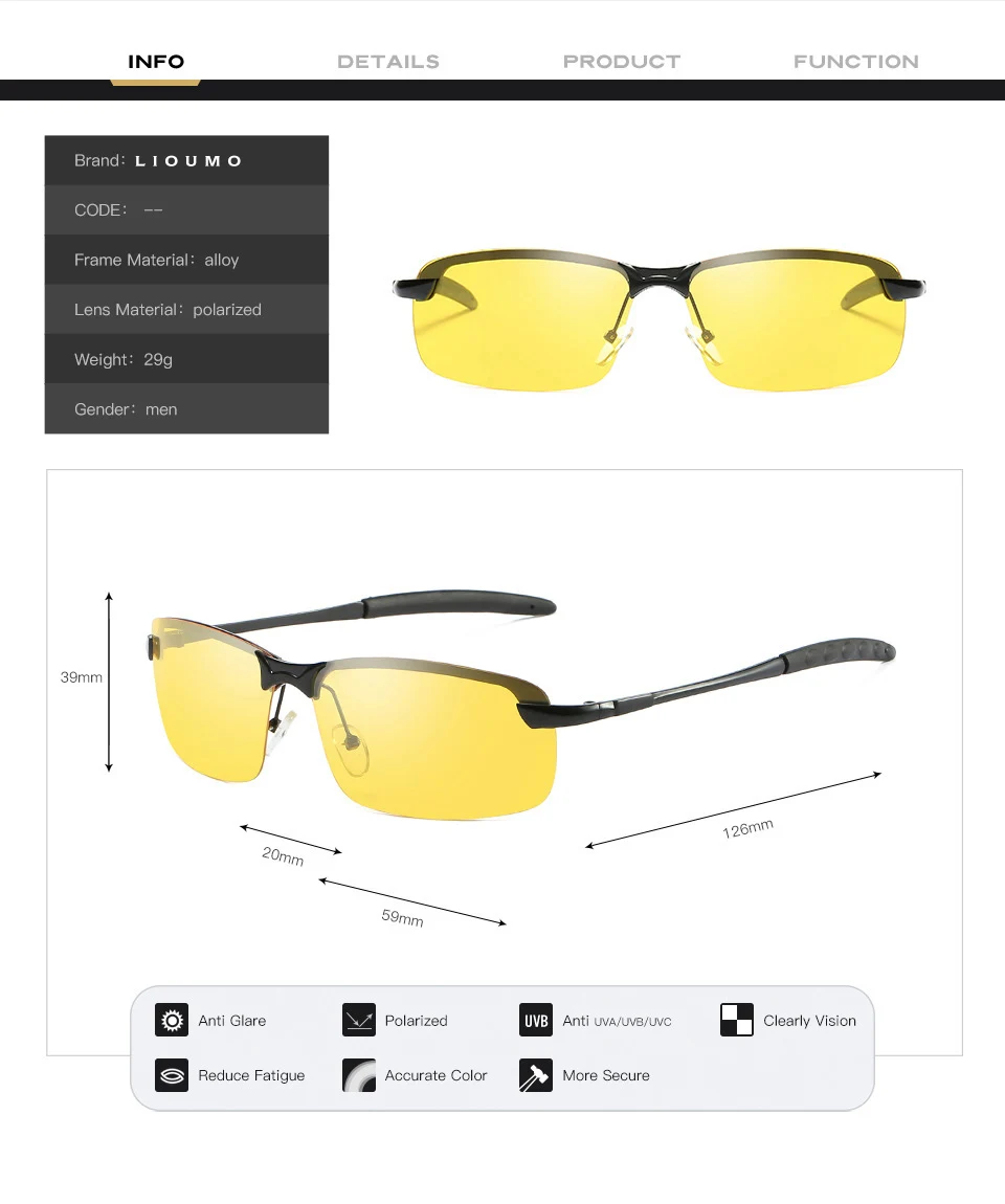 Randlose Nachtsichtbrille für Autofahrer von LIOUMO, polarisierte Sonnenbrille, UV400